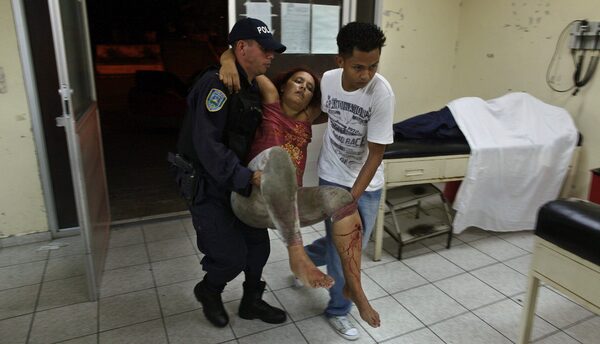A woman who was injured during a shooting at a pool hall gets emergency medical attention from doctors and nurses at the Catalino Rivas Public Hospital in San Pedro Sula, Honduras, MArch 11, 2012.Esteban Felix/AP Photo