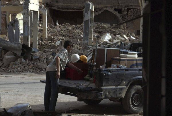 A boy loads a truck with the remains from his shop after it was damaged by what activists say was shelling by forces loyal to Syria's President Bashar Al-Assad, Deir al-Zor, April 17, 2013.Khalil Ashawi/Reuters