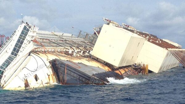 The food and cooking oils would spew out if the ship breaks apart under the enormous loads exerted on it by the 36 jacks, which are to winch the 290-metre-long ship to vertical over a 10- to 12-hour period and which were tested Sunday at partial pressure, lifting the ship 10 centimetres.