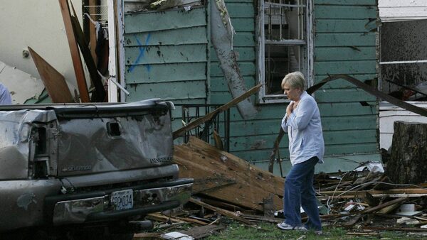 Evelyn Knoblauch surveys the damage to her children's home after it was destroyed when a tornado hit Joplin, Missouri May 23, 2011.