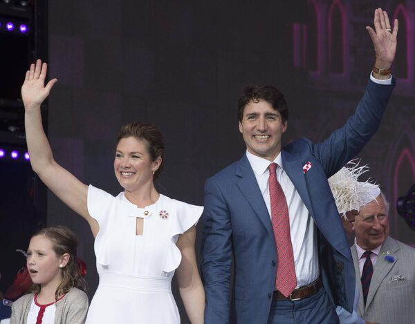 Prime Minister Justin Trudeau and his wife, Sophie Gregoire Trudeau, wave as they leave the stage in Ottawa on July 1, 2017.Adrian Wyld/The Canadian Press