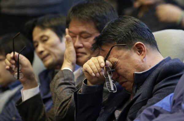 Family members of passengers aboard the sunken ferry Sewol wipe their tears after South Korean lawmakers voted during the plenary session at the National Assembly in Seoul, South Korea, Friday, Nov. 7, 2014.Lee Jin-man/The Associated Press