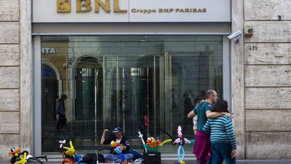 A street vendor sits in front of the BNL bank in Rome, Tuesday, Nov. 1, 2011. Europe's days-old plan to solve its crippling debt crisis has been thrown into turmoil by the Greek Prime Minister's shock decision to call a referendum on the country's latest rescue package.Andrew Medichini