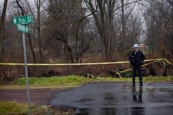 A Police officer stands near the scene where the body of suspected killer Bradley Stone was found in Pennsburg, Pennsylvania, December 16, 2014..BRAD LARRISON/Reuters