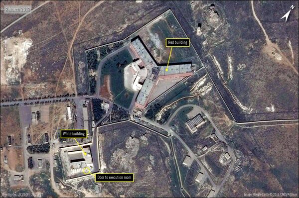 A handout satellite image released on Feb. 7, 2017, by Amnesty International shows the military-run Saydnaya prison, one of Syria's largest detention centres.Supplied/AFP / Getty Images