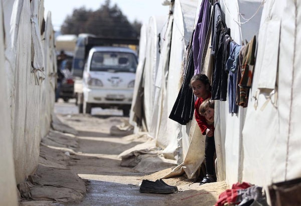 Syrian refugee children peek from their tent at the Bab Al-Salam refugee camp in Azaz, near the Syrian-Turkish border on March 25, 2013.Reuters