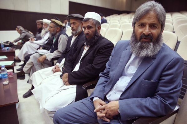 Fazel Ahmad Fazel, first right, newly appointed head of the national teachers’ council, talks during an interview with the Associated Press in Kabul, Afghanistan, Monday, June 23, 2015. A teachers strike demanding higher pay has shut down at least 27 schools in Afghanistan's capital.Massoud Hossaini/The Associated Press