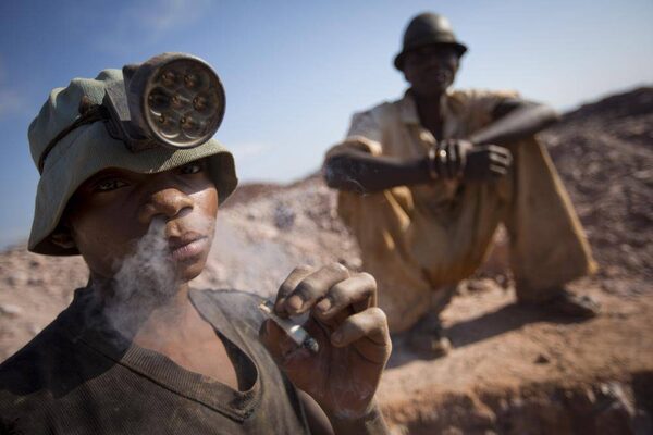 Miners smoke marijuana before heading down a 30 metre shaft at a cobalt mine just outside the city Likasi in the Democratic Republic of Congo, May 12, 2012.John Lehmann/The Globe and Mail