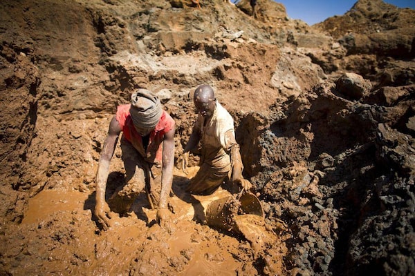Miners slop through the mud looking for fine granular copper at an old mine in the of city Kipushi in the Democratic Republic of Congo, May 10, 2012.John Lehmann/The Globe and Mail