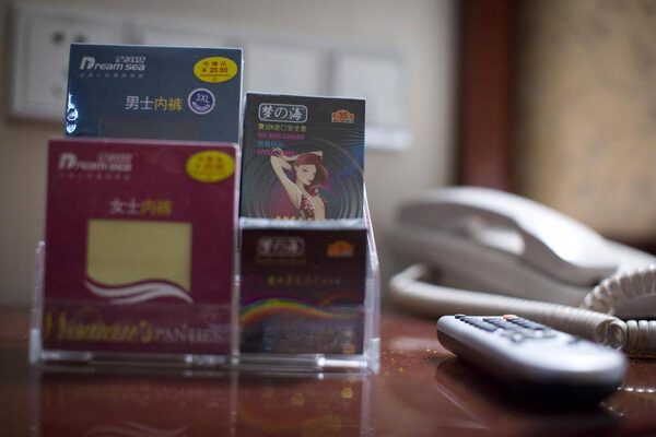 Men's and women's underwear plus two different types of condoms for sale in the rooms of the Huaihua Great Hotel in Huaihua, China January 13, 2013.John Lehmann/The Globe and Mail