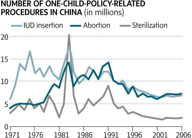 Since 1971, China has seen a total of 336 million abortions, completed 196 million sterilizations, and inserted 403 million intrauterine devices.