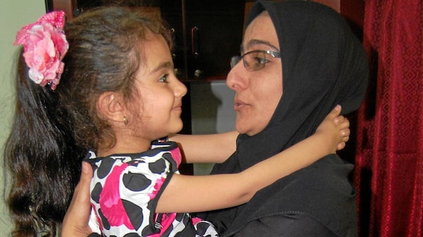 Shoreh Pirani, widow of the slain Iranian electrical engineer Darioush Rezaeinejad, holds her daughter Armita.