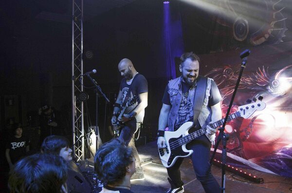 When the first sparks flew, the lead singer of Goodbye to Gravity joked that they weren't part of the heavy metal band's performance.