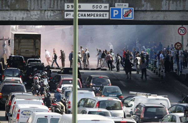 Striking French taxi drivers block traffic on the Paris ring road during a national protest against car-sharing service Uber.Charles Platiau/Reuters