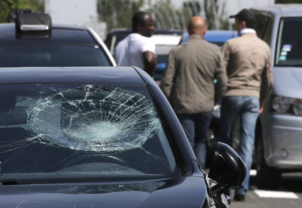 Taxis gather at a major entrance to Paris, snarling traffic and slowing access to Charles de Gaulle airport after weeks of rising and sometimes violent tensions over Uber.Michel Euler/The Associated Press