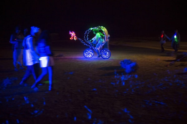 A man rides an illuminated bicycle during Midburn, a five day art, dance and music festival, culminating in the burning of their exhibits on the last two nights of the festival.Amir Cohen/Reuters
