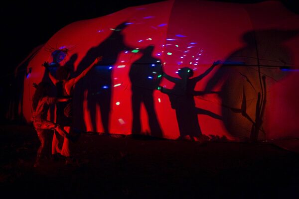 Silhouettes of people dancing are reflected on a wall during the Midburn festival in southern Israel.Amir Cohen/Reuters