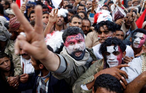 The protests, organized by Shiite Houthi rebels supporting former president Ali Abdullah Saleh and Houthi leader Abdul-Malek al-Houthi, called for an end to the conflict which has killed more than 10,000 civilians, displaced over three million people and pushed the impoverished country to the brink of famine.