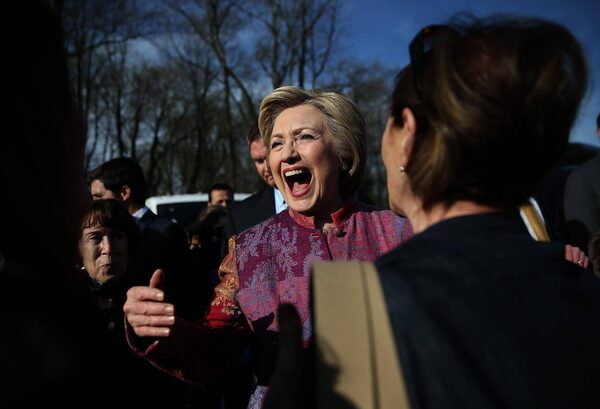 Democratic presidential candidate Hillary Clinton greets supporters outside a polling station in Chappaqua, N.Y., Ms. Clinton won the New York State primary held on April 19, 2016.Justin Sullivan