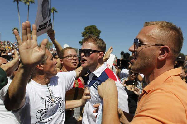 Mr. Trump has raised the stakes with his violent rhetoric regarding protesters at his campaign events. He said he wished he could punch one in the face, and expressed fondness for a time when demonstrators were "carried out on stretchers." Mr. Trump also offered to pay the legal fees for a supporter who hit a protester at one of his rallies. What is more, if he does not become the Republican nominee, Mr. Trump said on Twitter, "riots" were "likely."