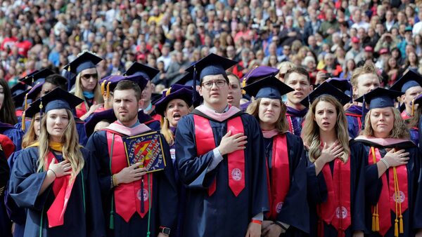 Drawing parallels to what was widely viewed as a longshot bid by Trump for the presidency, he urged the more than 18,000 graduates to fight for what they believe in and to "challenge entrenched interests and failed power structures." A crowd of more than double that size filled an outdoor stadium on campus to welcome just the second sitting president to address the university's commencement.