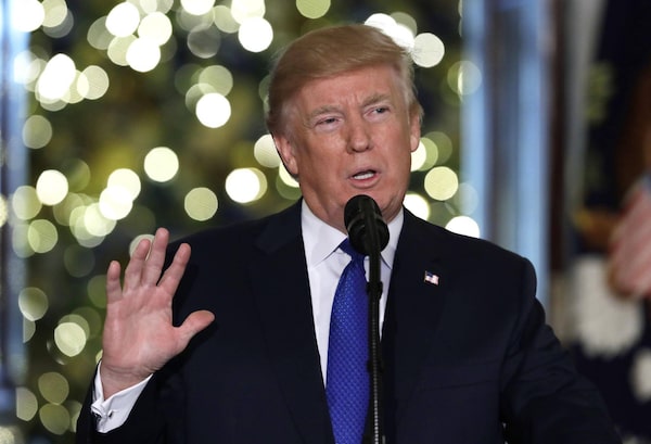 President Donald Trump speaks in the Grand Foyer of the White House in Washington, D.C., Dec. 13, 2017.Evan Vucci/The Globe and Mail