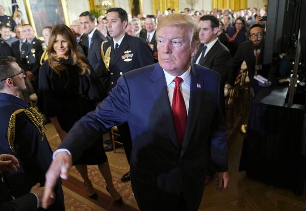 President Donald Trump and first lady Melania Trump, left, leave the East Room of the White House in Washington, after speaking on the opioid crisis, Thursday, Oct. 26, 2017.Pablo Martinez Monsivais/The Associated Press