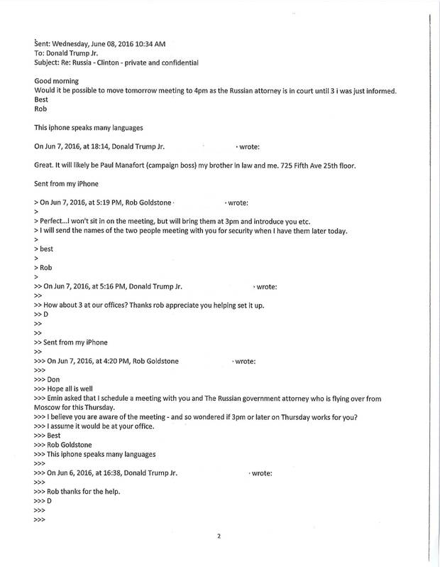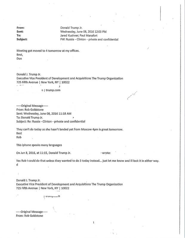 The four pages of Trump Jr.'s e-mail chain