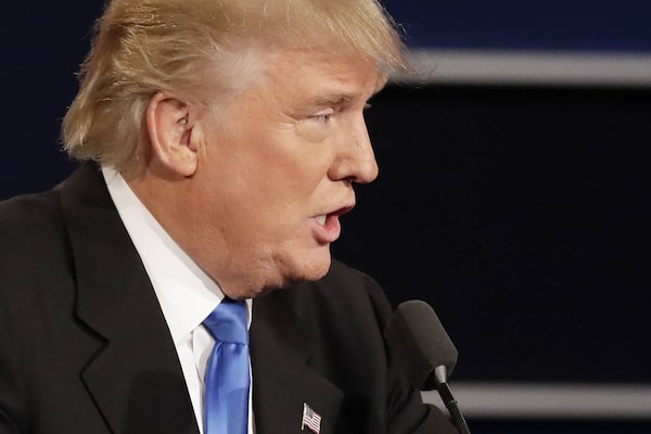 Republican presidential nominee Donald Trump answers a question during the presidential debate with Democratic presidential nominee Hillary Clinton at Hofstra University in Hempstead, N.Y., Monday, Sept. 26, 2016.David Goldman/The Associated Press