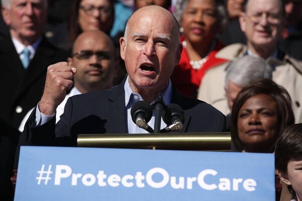California Governor Jerry Brown speaks during an event on health care at the House East Front of the Capitol in Washington, D.C., on March 22, 2017.Alex Wong/Getty Images