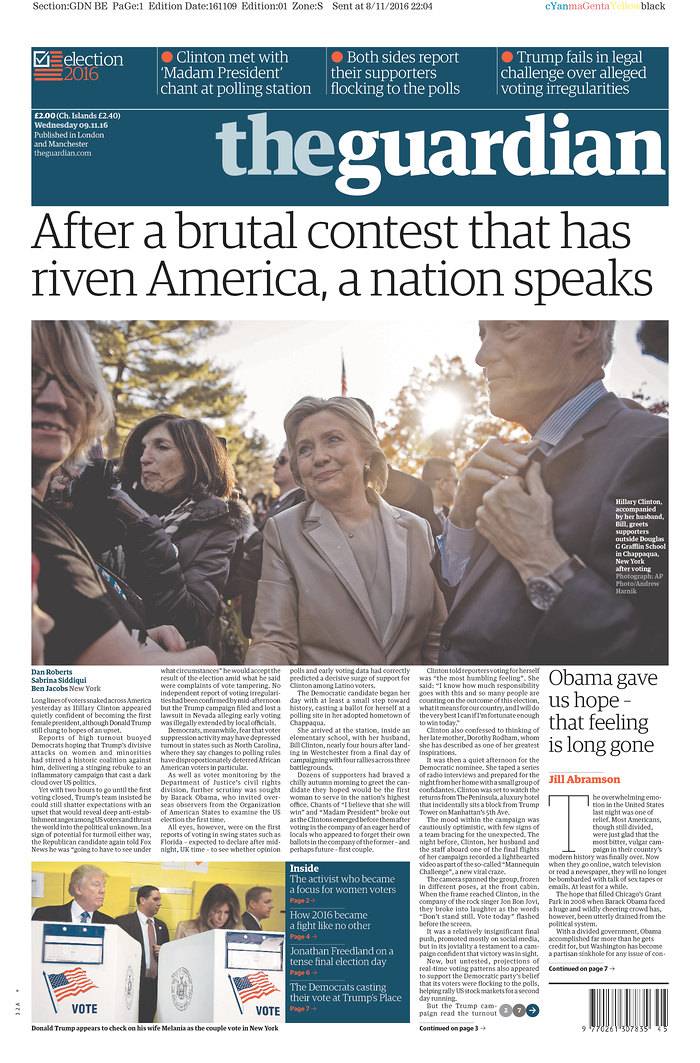 Across South America, news outlets note that predictions about the key role to be played by Latino voters backing Ms. Clinton proved erroneous. Colombia's major newspaper headlines the election story "With Trump, the white American giant rises."