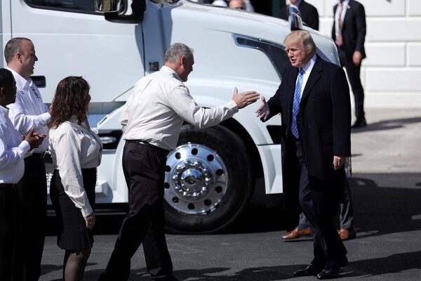 U.S. President Donald Trump welcomes truckers and CEOs to attend a meeting regarding healthcare at the White House in Washington, U.S., March 23, 2017.CARLOS BARRIA/Reuters