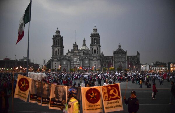 People gather at El Zocalo square in Mexico City during a protest against the increase in the price of gasoline and U.S. President Donald Trump's plan of building a wall between Mexico and the U.S., on Jan. 31, 2017.YURI CORTEZ/AFP / Getty Images