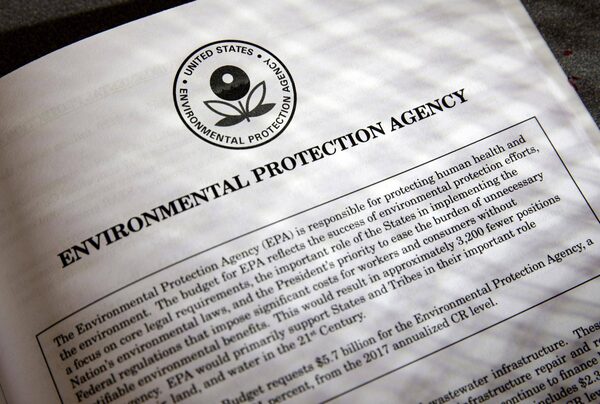 In this March 16, 2017, file photo, proposals for the Environmental Protection Agency in President Donald Trump's first budget are displayed at the Government Printing Office in Washington. Trump will sign an executive order on March 29 that will suspend, rescind, or flag for review more than half-a-dozen measures that were part of former President Barack Obama’s sweeping plan to curb global warming.J. Scott Applewhite/The Associated Press