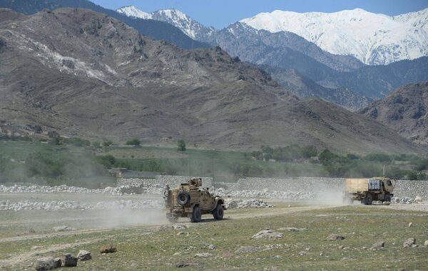U.S. armoured vehicles patrol near the site of a U.S. bombing during an operation against Islamic State militants in the Achin district of Nangarhar province, Afghanistan, on April 15, 2017.NOORULLAH SHIRZADA/AFP / Getty Images