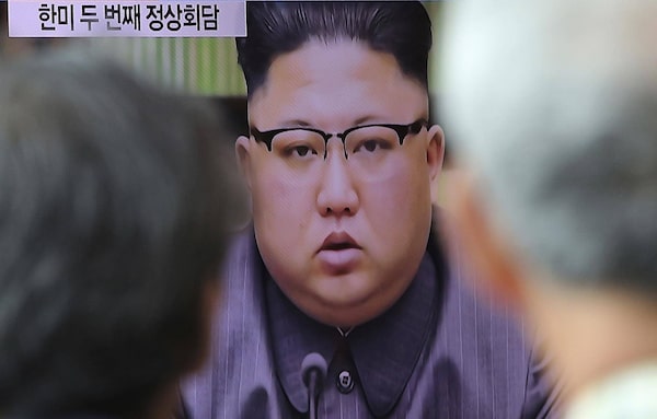People watch a TV screen showing an image of North Korean leader Kim Jong-Un delivering a statement in response to U.S. President Donald Trump's speech to the United Nations at Seoul Railway Station in Seoul, South Korea, Friday, Sept. 22, 2017.Ahn Young-joon/The Associated Press