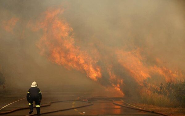A firefighter reacts as flames erupt along Cape Town's scenic Chapman's Peak Drive.Mike Hutchings/Reuters