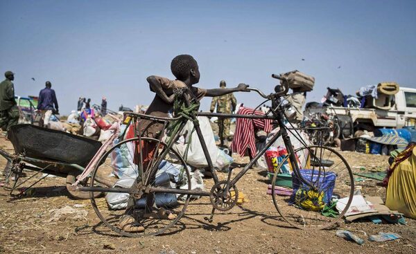 A young boy pushes a bicycle towards the gate of the United Nations Mission in South Sudan compound in Bentiu, South Sudan, on Jan. 12, 2014.MACKENZIE KNOWLES-COURSIN/The Associated Press