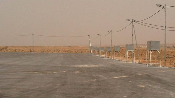 It looks more like an empty parking lot than anything else. An expanse of the flat desert land was paved with asphalt -- about 200 meters by 150, or about 30,000 square meters – an area big enough to house a few thousand people in tents, although the soldiers and workers on the scene said they didn't know how many could be accommodated, and the government won't even acknowledge the camp's construction.