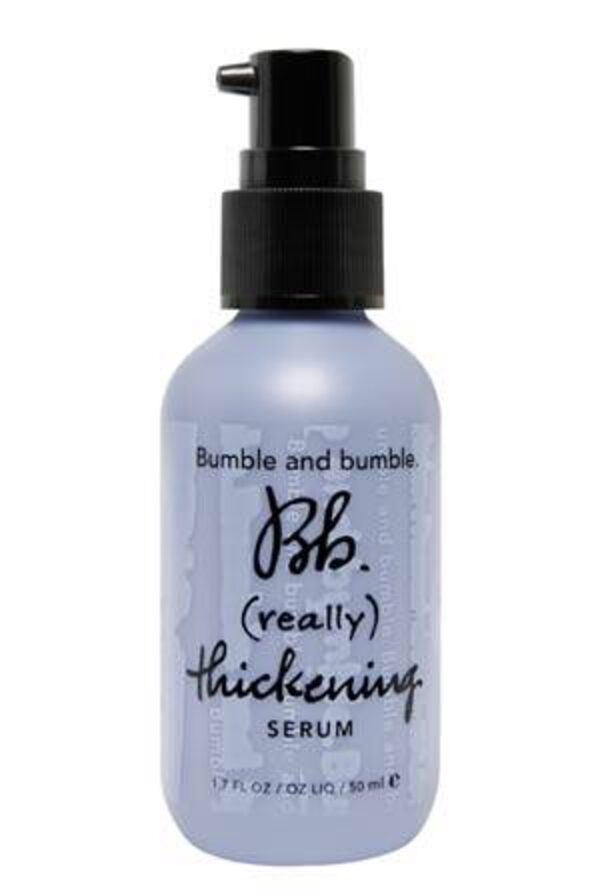 The new (really) Thickening Serum is a nightly treatment, though the more serious among us can apply it twice daily. Two or three pumps of the formula can be worked into dry or wet hair, and those with longer hair should smooth it through their ends twice. The liquid has a slightly sweet scent, with key ingredients of algae, white birch, mushroom extracts, caffeine and cholesterol. Running your hand through your hair may feel a little oily, but otherwise the serum does its thing without disturbing your sleep.