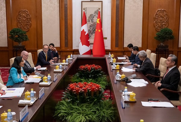Foreign Minister Wang Yi welcomed his Canadian counterpart, Anita Anand, to Beijing on Friday. After their meeting, he spoke about the prospect of a 'new starting point' between the countries. Gilles Sabrié/The Globe and Mail