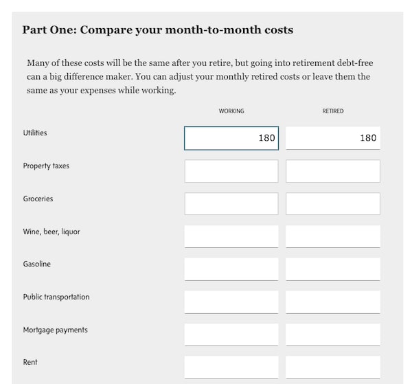The Globe’s retirement readiness calculator is aimed to line up the income requirements you had during your career against forecast living costs in retirement, known as the retirement ratio. Frugal types may be comfortable on 50 per cent of their working income in their golden years, while the financial industry typically sets it at 70 per cent. Some of us may even plan on spending as much in retirement as we did while fully employed.