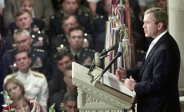 George W. Bush speaks at Washington National Cathedral on Sept. 14, 2001.TIM SLOAN/AFP via Getty Images