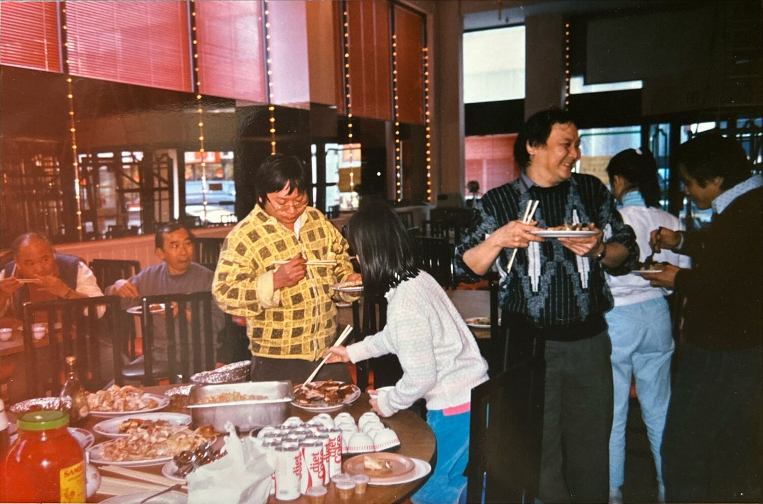 Our dad, here in the yellow shirt. We were celebrating something – we’re not sure what exactly – with our friends, family, and longtime staff. Like so many moments back then, our dad and team cooked all the food themselves. When we first opened in 1986, there weren’t many places for Hakka families like ours to gather. Our restaurant became a hub.