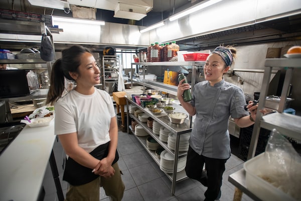 Jeanette (left) and her sister Joanna in the kitchen of Yueh Tung.