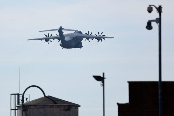 A Belgian Air Force Airbus A400M Atlas, carrying humanitarian aid that is destined for an airdrop over Gaza, departs from a military airport in Melsbroek, Belgium on March 4.Yves Herman/Reuters