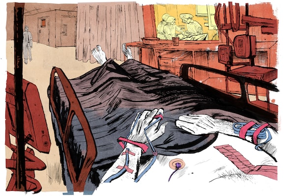 The aftermath of the first surgery, by contrast, was a nightmare of vivid delusion and toxic fantasy, with me intubated and shackled to the bed. I thrashed and raved. I thought I was in a Frank Herbert science-fiction story I had read years ago, trapped in an asylum. I thought the doctors and nurses were harvesting organs, not replacing them, and so I planned an elaborate jailbreak that would have seen me pounding along the rain-soaked Toronto pavement in an adult diaper and a backless hospital gown.
