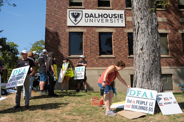Members of the Dalhousie Faculty Association walk a picket line on the Halifax university's campus as students arrive to begin the school year on Sept. 2.Darren Calabrese/The Canadian Press