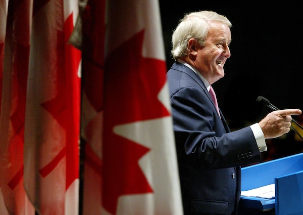 Former prime minister Brian Mulroney gestures during his speech to delegates at the PC party's leadership convention in Toronto on May 30, 2003.KEVIN FRAYER/The Canadian Press