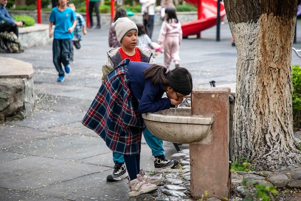 Children use a water fountain in Tehran in March. Iran does not depend on desalination to the extent the Gulf states do, but different factors contribute to its water scarcity.Majid Saeedi/Getty Images